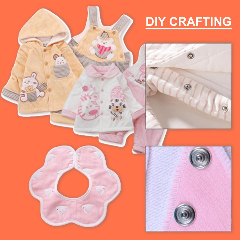 Este kit de herramientas a presión es suficiente para satisfacer sus diversas necesidades de bricolaje o confección de ropa fina. Se puede aplicar a los baberos del bebé ropa de gatear sombreros camisas mamelucos bebé saliva toallas Barbie/muñeca ropa ropa para mascotas u otros lugares que lo necesite.